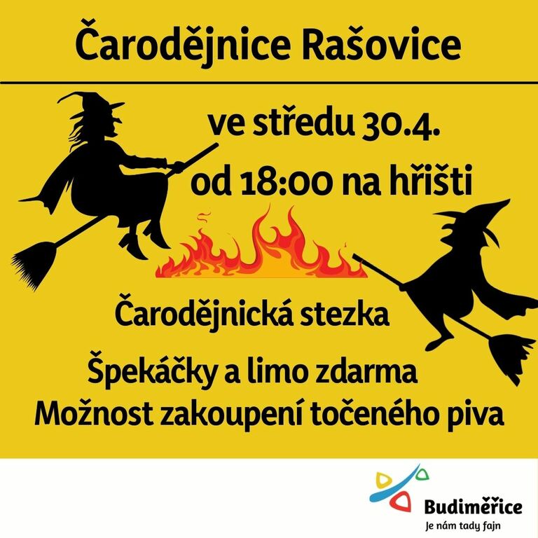 Ve středu 30. dubna od 18 hodin v Budiměřicích ve Fajn areálu a v Rašovicích na hřišti.