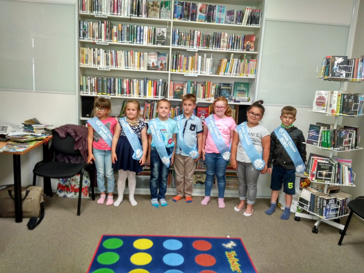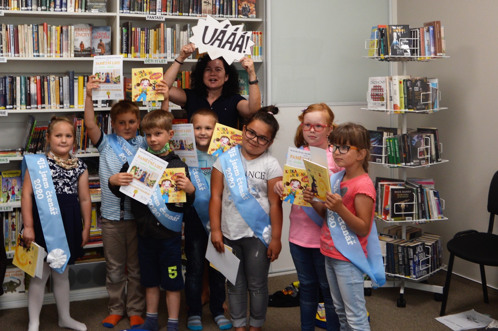 Součástí besedy bylo i pasování prvňáčků na čtenáře, kterého se ujaly paní spisovatelka Smolíková a paní učitelka Grospičová. Kromě šerpy dostaly děti pamětní list a knížku "Katka a klokan ze šuplíku".