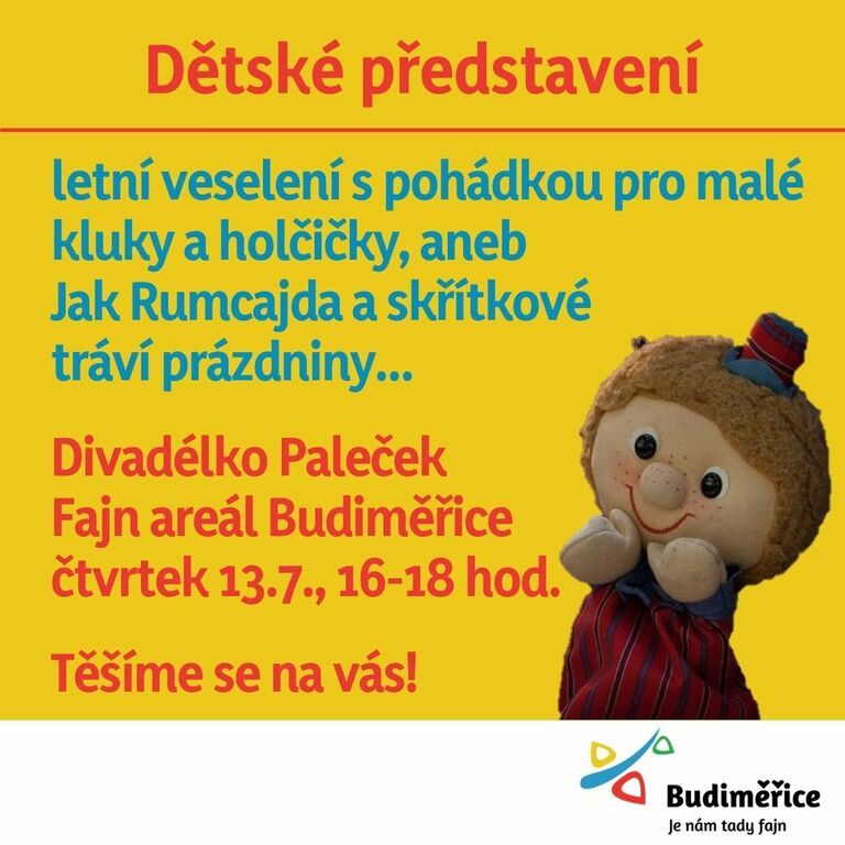 Divadélko pro děti ve čtvrtek 13.7. od 16 hodin ve Fajn areálu v Budiměřicích.