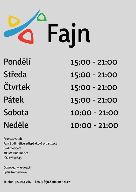Fajn restaurace bude otevřena kromě úterý každý den. Ve všední dny od 15 do 21 hodin a o víkendu od 10 do 21 hodin.