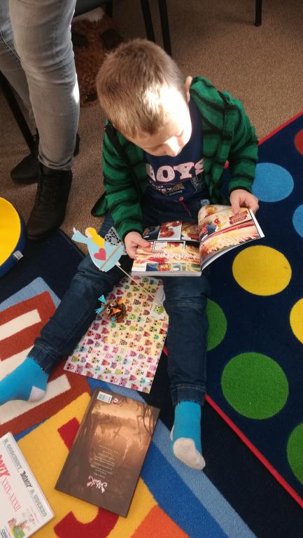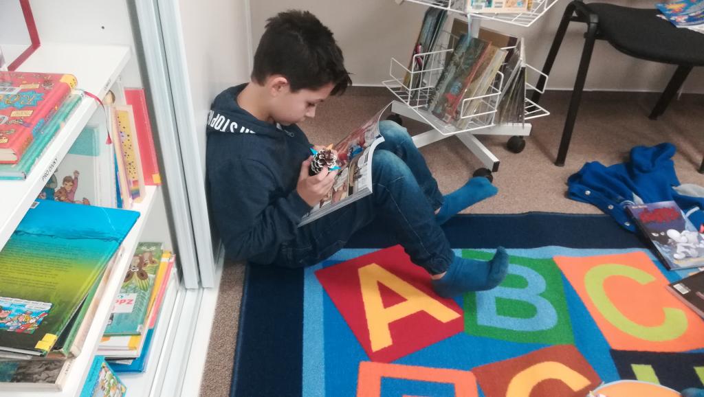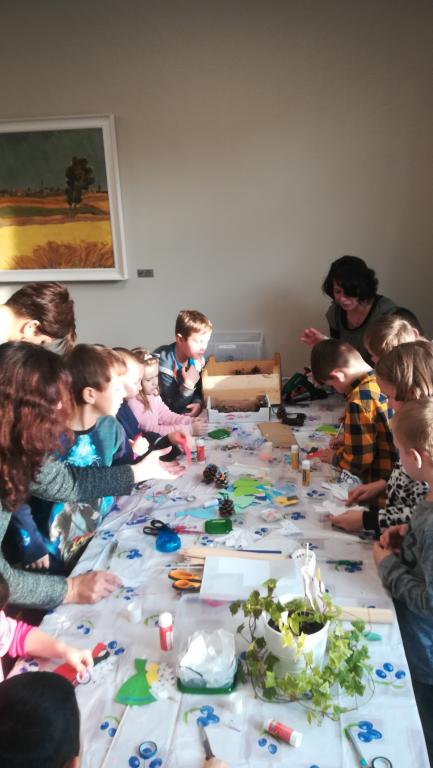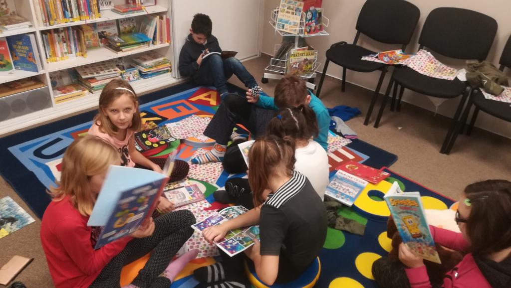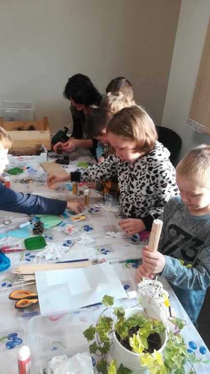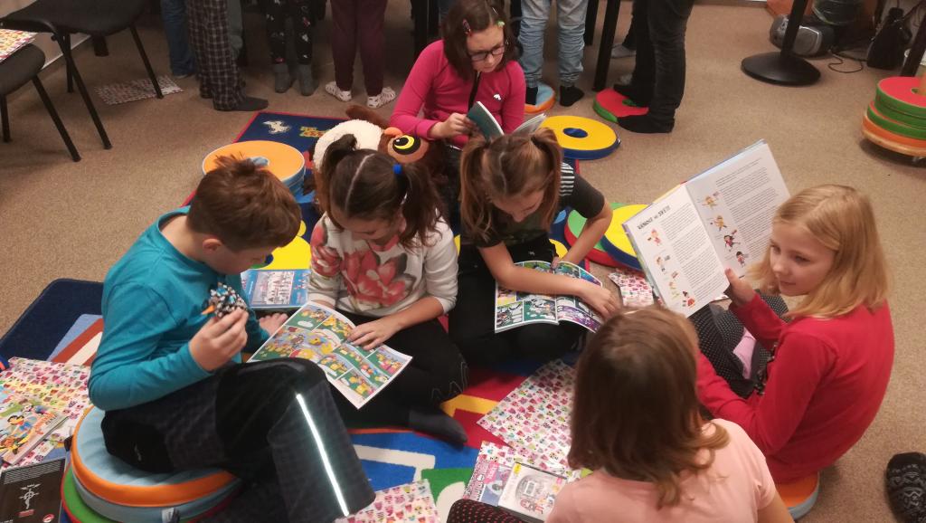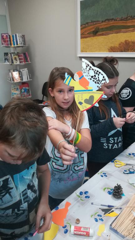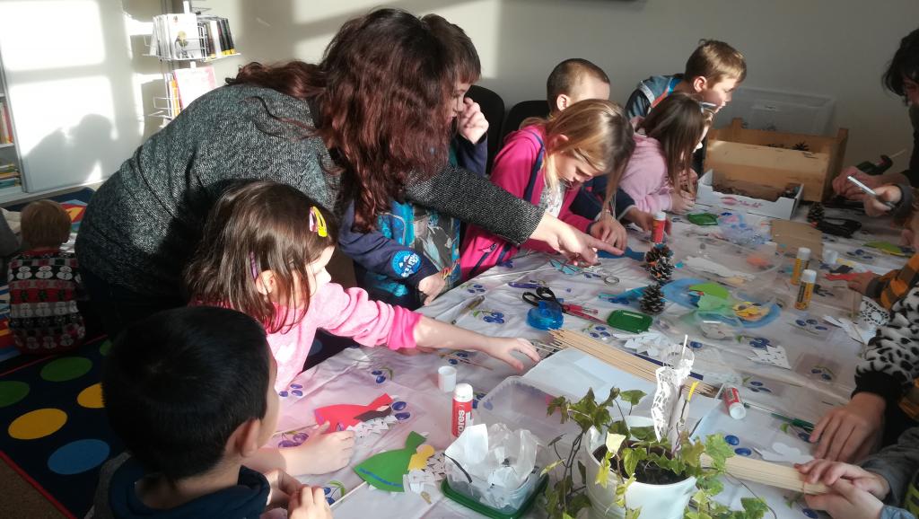 Povídání a čtení o Vánocích u nás a v cizích zemích. Ukázka knih s vánoční tematikou. Tvoření Frikulína ze šišky a papírového anděla.
