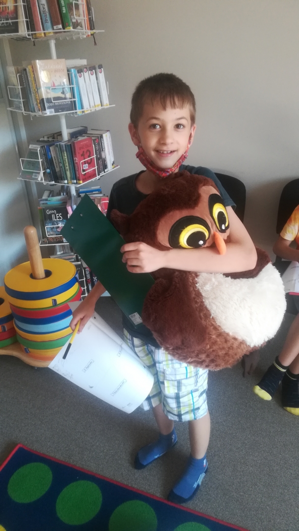 Jako každý rok dostali prvňáčci desky se sovičkou Frikulínem s několika drobnostmi a přihláškou do knihovny. U obou skupinek byl na závěr čas, aby si školáci mohli půjčit knížky.