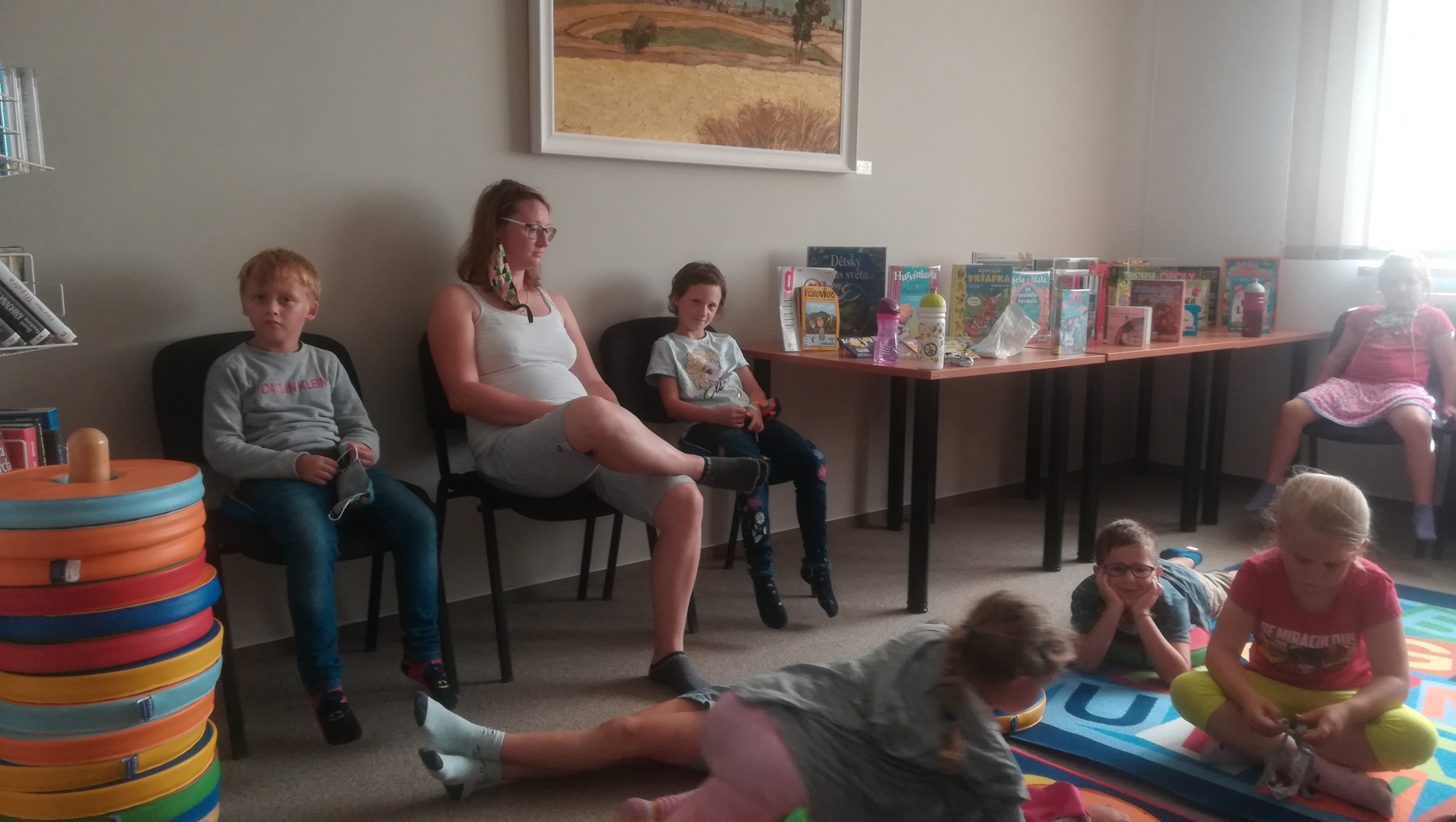 Pro skupinku mladších školáků (1. - 3. třída) bylo připraveno povídání o knihovně, knížkách a jejich řazení v poličkách. Děti se seznámily s nemocnicí pro knížky. Řekli jsme si, co se s knížkou může a nemůže. Děti si vyzkoušely hru na řazení knížek podle abecedy, udělaly hada podle prvního písmenka svého jména. Pracovali jsme s listem "Kde všude má rodina Knížkových v domě knížky" od spisovatelky Kláry Smolíkové. Povídali jsme si, kde mají doma knížky, kde nejraději čtou a jaké mají rády knížky.