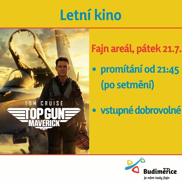 Promítání filmu Top Gun: Maverick ve Fajn areálu v Budiměřicích v pátek 21.7. od 21:45 (po setmění).
