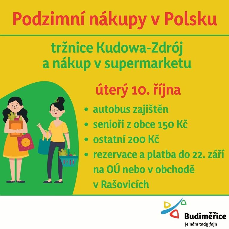 Výlet se uskuteční v úterý 10. 10. Hlásit se můžete na OÚ v Budiměřicích a v obchodě v Rašovicích.