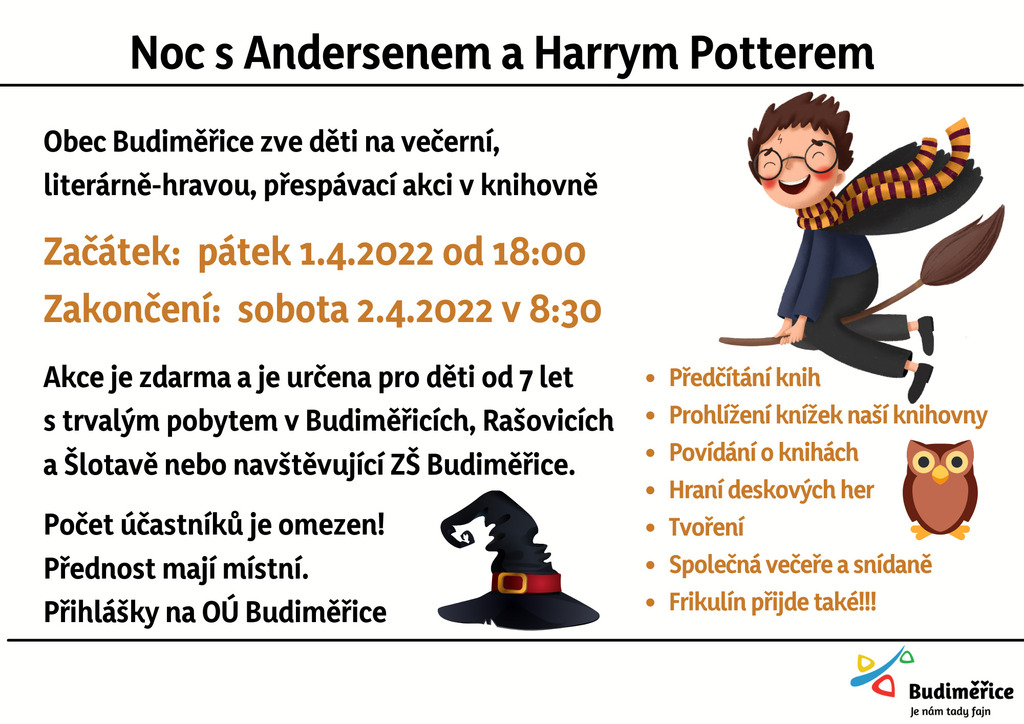 Akce je zdarma a je určena pro děti od 7 let s trvalým pobytem v našich obcích nebo navštěvující ZŠ Budiměřice. Počet účastníků je omezen, ale přednost mají místní.