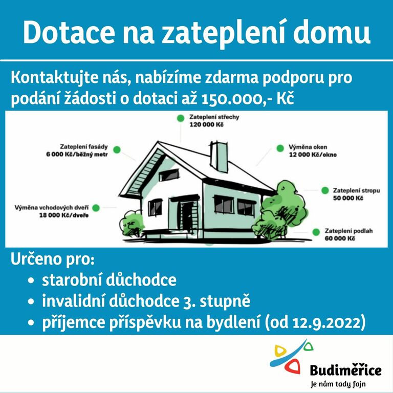Obec Budiměřice je členem sdružení obcí, spolků a firem s názvem MAS SVATOJIŘSKÝ LES, které přišlo s nabídkou pomoci při žádostech o Novou zelenou úsporám. Prostřednictvím MAS můžete mít služby spojené a tímto programem pro žadatele zdarma. Pokud potřebujete s dotací poradit, můžete se spojit s paní Danielou Košvancovou přímo (tel.: 739 510 290) nebo nás kontaktujte na obecním úřadě a uspořádáme společnou schůzku na které budou případné dotazy zodpovězeny. Byla by škoda nabízenou pomocnou ruku nevyužít.