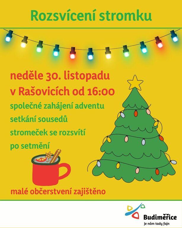 O první adventní neděli 30. listopadu od 16 hodin se koná sousedské setkání na návsi v Rašovicích u tradičního teplého občerstvení. Vánoční stromek společné rozsvítíme po setmění kolem 17 hodiny.