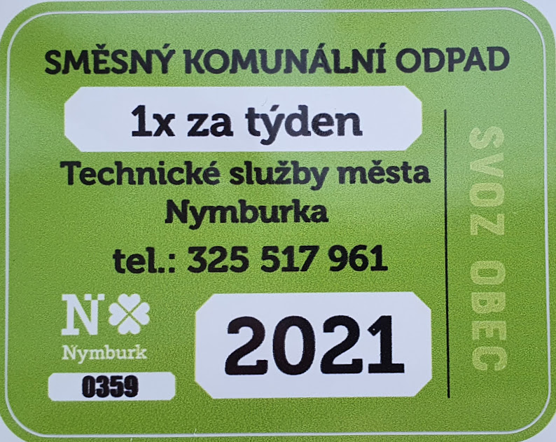 Od pondělí 1.3.2021 je nutné mít na popelnici nalepenou svozovou známku pro rok 2021. Pokud jste tak ještě neudělali, tak na to nezapomeňte. Jinak riskujete, že vám popelnici TS Nymburk nevyvezou.