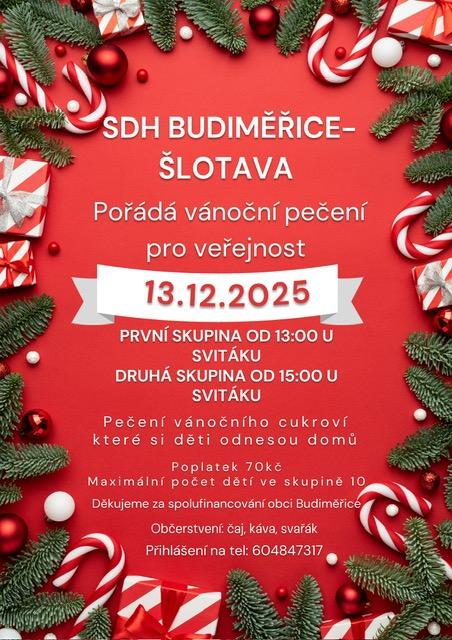 SDH Budiměřice - Šlotava pořádá v sobotu 13.12.2025 vánoční pečení.