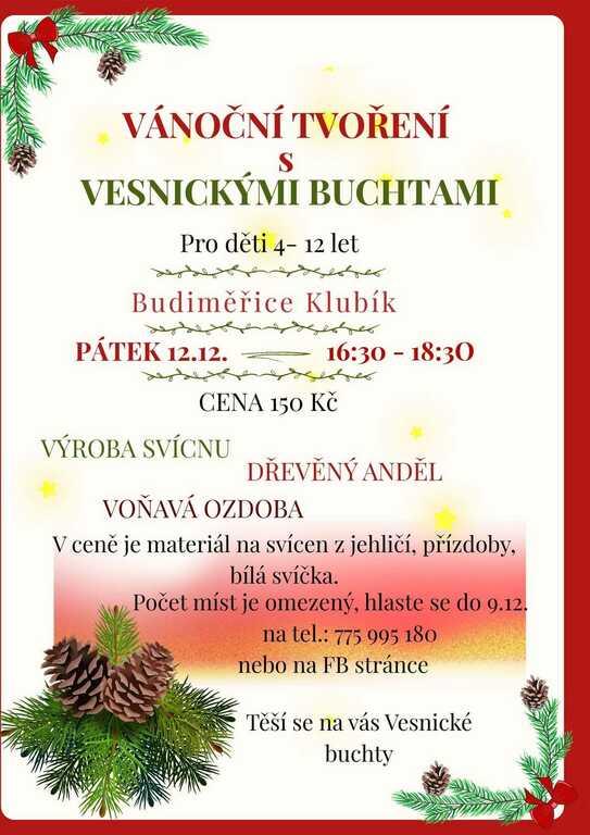Vesnické buchty pořádají v klubíku v pátek 12. 12. vánoční tvoření.