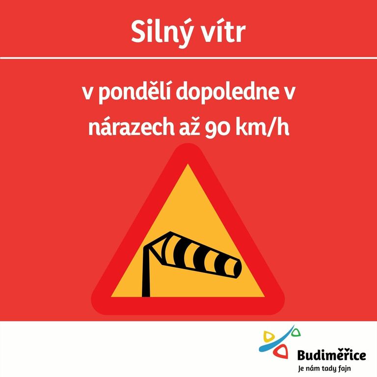 Varování před silným větrem na pondělí 21.02. během dopoledne. Poryvy větry mohou dosáhnout v nárazech až 90 km/h. Dbejte zvýšené opatrnosti při pohybu mimo domov. Pozor na uvolněné předměty.