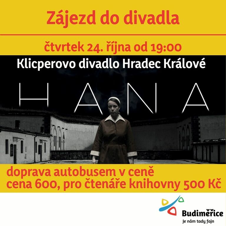 Doprava autobusem přímo z Budiměřic. Přihlásit se můžete přes online formulář nebo osobně na obecním úřadě. Cena za lístek a dopravu 600,- Kč. Pro registrované čtenáře naší knihovny jsme připravili slevu 100,- Kč.