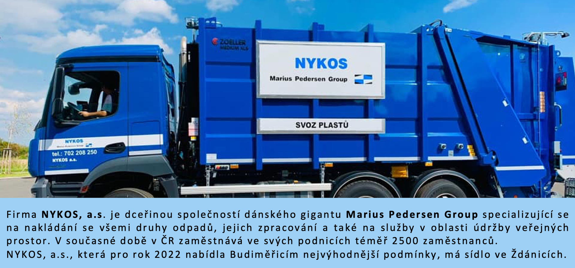 Cenový tlak na svozovou firmu - provedli jsme výběrové řízení na firmu svážející odpad. V roce 2022 nebudete potkávat „popeláře“ TS Nymburk, ale vozidla s logem NYKOS, a.s. Jejich nabídka byla o 50 tis. Kč nižší, než druhá nejlevnější konkurence. Pro ilustraci – úspora 75 Kč na jednoho obyvatele. Zároveň jsme si vymínili, že nebudeme platit paušál za jednu popelnici (známku) jako doposud, ale cena se bude odvíjet od svezené hmotnosti. To nám umožní platit méně, pokud budeme více třídit! Doposud na tom v podstatě nezáleželo. Smlouva je pouze na 1 rok, pro rok 2023 budeme opět cenu soutěžit.
