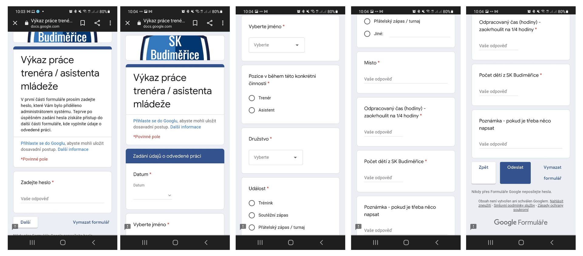 Výkaz práce trenéra / asistenta